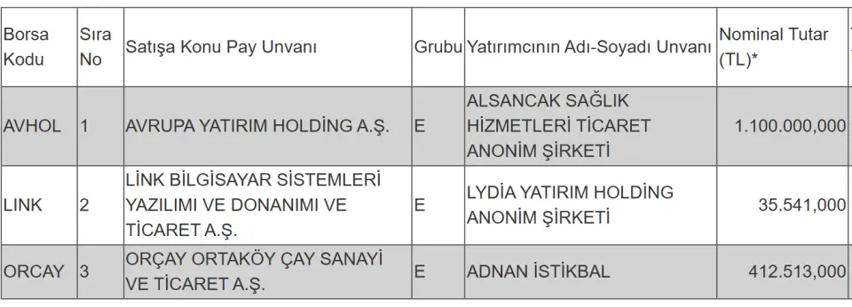 Bu işleme konu olan bir şirket oldu. Bu şirket, AVRUPA YATIRIM HOLDİNG A.Ş. olurken, çeşitli yatırımcılar E tipi işlem görmeyen paylarının bir miktarını borsada işlem gören tipe dönüştürmek için başvuru yaptı.