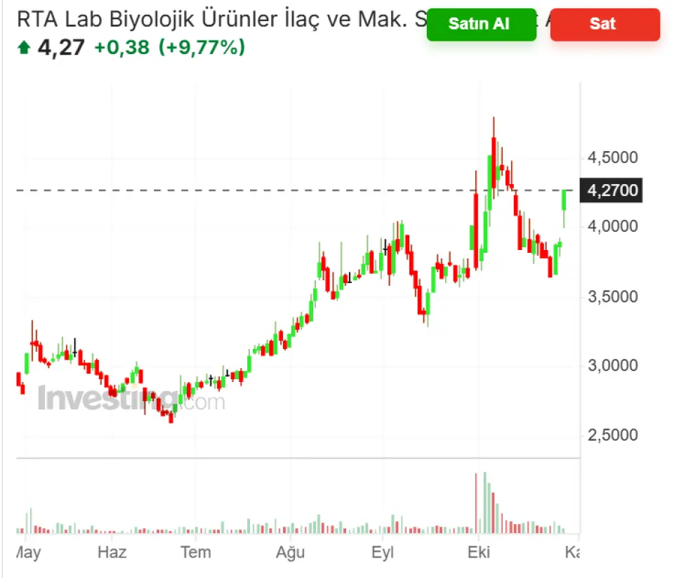 Böylece RTA Laboratuvarları Biyolojik Ürünler İlaç ve Makina Sanayi Ticaret A.Ş. (RTALB), tarafından 27 Ekim 2025 tarihinde paylaşılan bilançoya göre şirketin net dönem karı, brüt kar ve özkaynakları artmış oldu.
