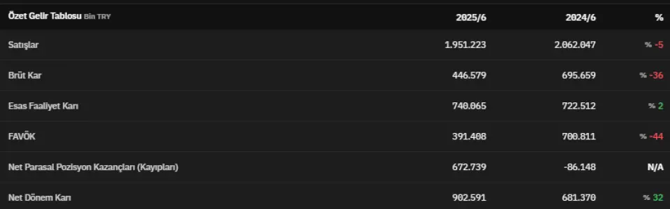 FAVÖK 2025 yılının ikinci çeyreğinde 391.408.000 TL olarak açıklanmıştır. Net dönem kârı ise 902.591.000 TL olarak kaydedildi. İlgili veri 2024 yılının ikinci çeyreğinde 681.370.000 TL olarak açıklanmıştı. Böylece ilgili veri %32 artmış oldu.
