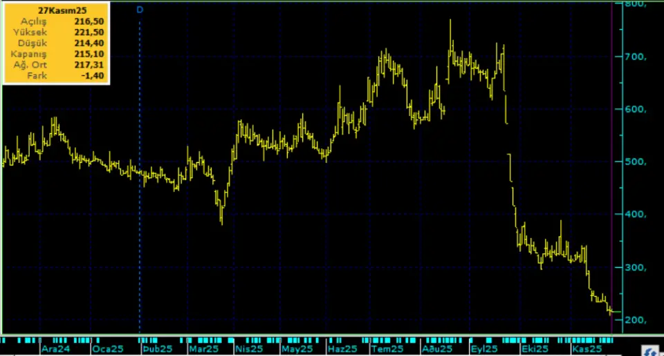 Bu fiyat hissenin 2 yıl önceki fiyatları. Hisse 2024 yılı Temmuz ayında 745 TL fiyata kadar prim yapmış ve uzun süre bu fiyat civarında tutunmuştu. Bu yıl Mart ayında 380 TL fiyatlara kadar düzeltme yapan hisse yeniden kuvvetlenerek, Ağustos ayı sonlarında 760 TL zirve fiyatı gördü.