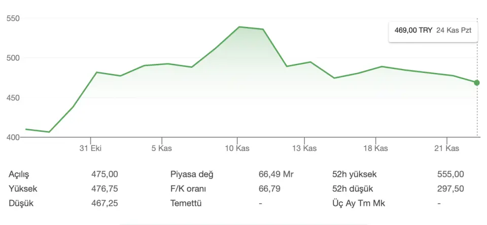 BRSAN hissesindeki değişim yatırımcının da ilgisini çekti. Kamuyu Aydınlatma Platformu'nda (KAP) yapılan duyuru sonrası aynı gün BRSAN hissesi %7’nin üzerinde yükselmişti. Geçen ay %14,39 yükselen BRSAN hissesi, son 5 günde %2,29 değer kaybederken dünü de %1,78 değer kaybı ile tamamladı. 10 Kasım 2025'te 539 TL'yi gören hisse, dünü 469 TL'den noktaladı.