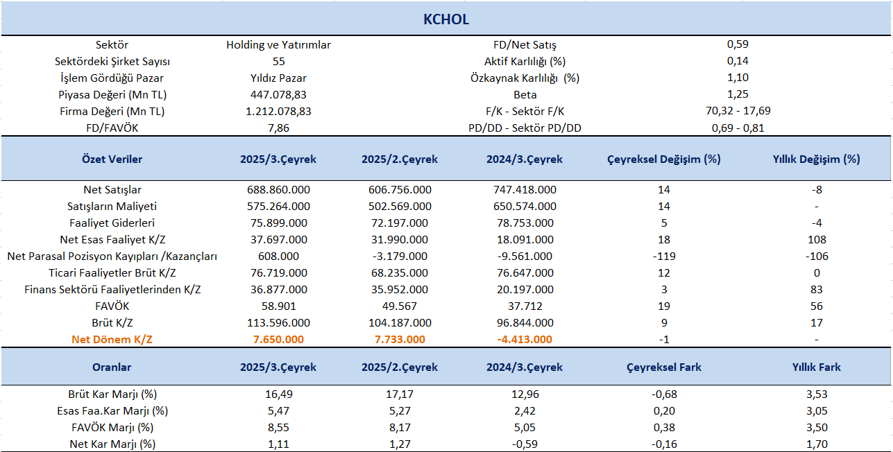 KCHOL 3Ç25 Finansal Sonuçlar Değerlendirmesi