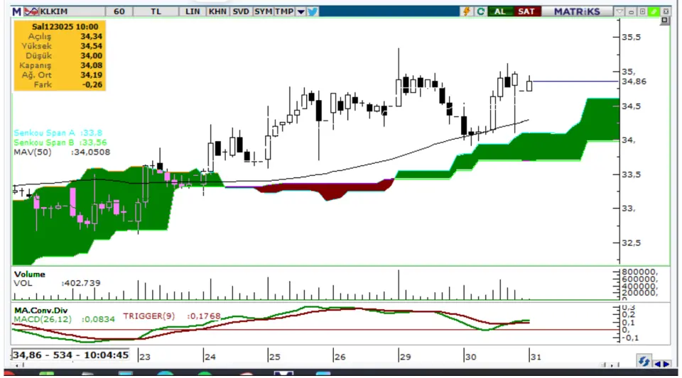 nedeniyle KLKIM hissesinde 35,24TL ve daha sonra 35,58TL seviyelerine doğru yükseliş kaydedilebilir.