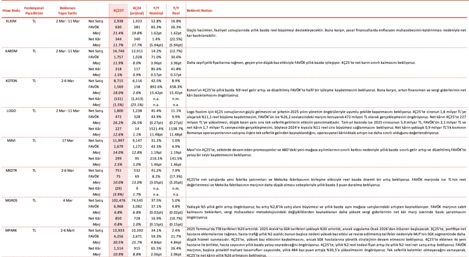 KOTON, MGROS ve LOGO İçin 4Ç25 Net Kar Öngörüleri Paylaşıldı!