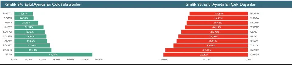- "Katılım Endeksi hisse bazında; Eylül ayında en çok düşüş %20,82 ile DAPGM hissesinde görülürken, en çok yükseliş %83,00 ile ALKA hissesinde kaydedildi. Eylül'de en yüksek getiri yaklaşık %12,44 ile 2003 yılında gerçekleşirken, en belirgin düşüş %10,68 ile 2008'de yaşandı."