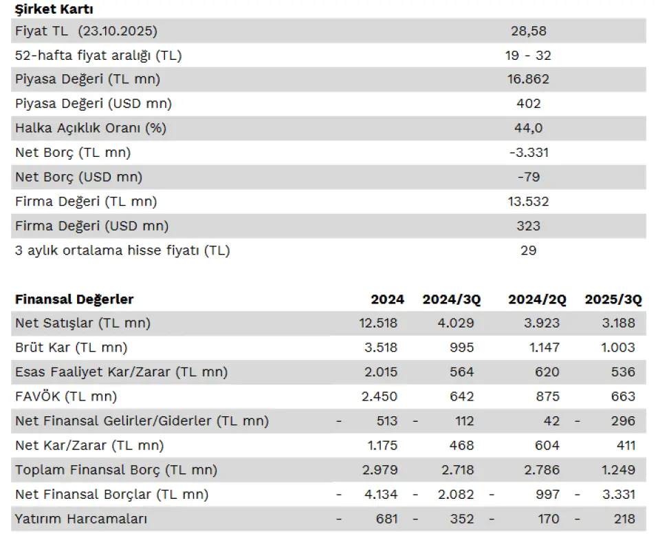 Açıklanan finansalları nötr değerlendirmekle birlikte şirketin mevcut FD/FAVÖK rasyosunu 5.17x (yurtdışı benzerler 7.06x) ile cazip çarpanla işlem görmeye devam ettiğini takip ediyoruz.