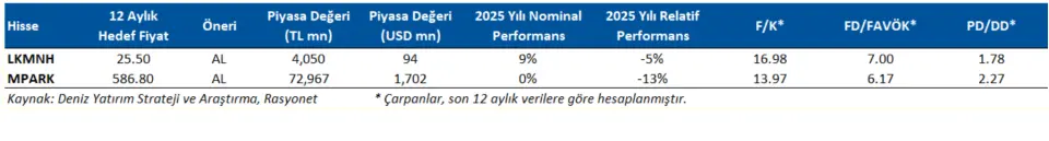 LKMNH ve MPARK hisseleri için 2026 hedef fiyatlar açıklandı! Aracı kurum Deniz Yatırım hastane sektörüne ilişkin değerlendirmelerde bulundu.