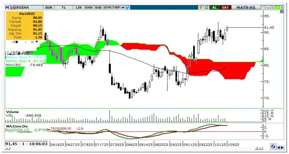 nedeniyle KOZAA hissesinde 92,40TL ve daha sonra 93,70TL seviyelerine doğru yükseliş kaydedilebilir.