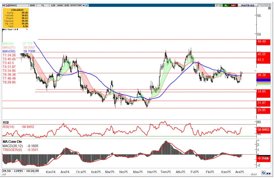 nedeniyle MAVI hissesinde 40,00TL ve daha sonra 40,50TL seviyelerine doğru yükseliş kaydedilebilir.