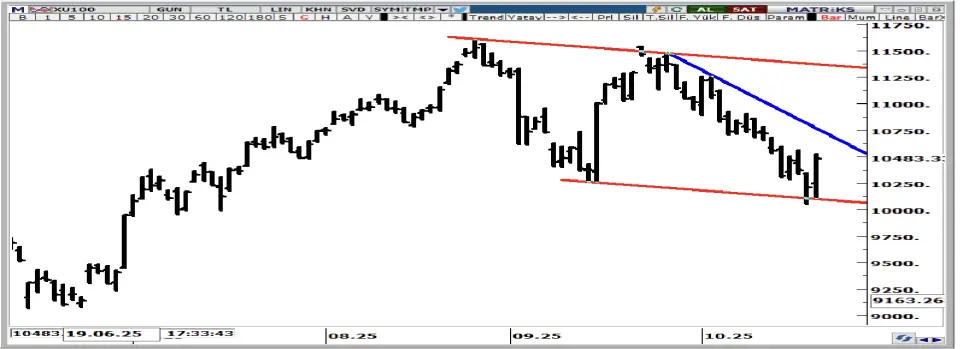 - "BİST 100 endeksinde düşüş hareketi tepki alımlarıyla karşılaştı. İlk destekler 10.400 ve 10.300 seviyelerinde. Sonraki destekler 10.200-10.100’de bulunuyor. İlk dirençler ise 10.520-10.560 seviyelerinde. Bu seviyelerin üzerinde sonraki dirençler 10.680-10.720 seviyelerinde bulunuyor. BİST 100 endeksinde tepki yükselişinin sürmesi öngörülmekle direnç seviyelerinde satışlar görülebilir."