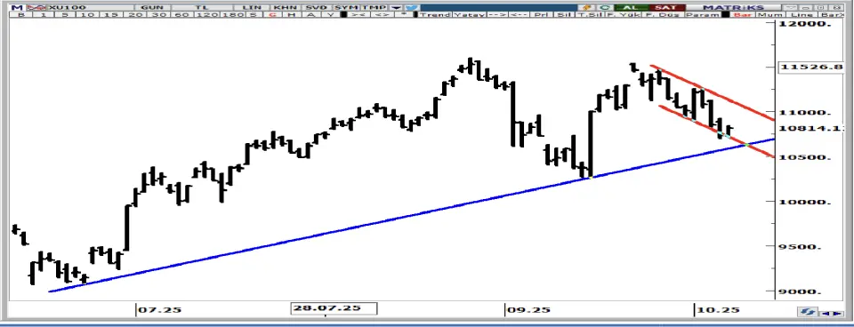 - "BİST 100 endeksinde düşüş hareketi tepki çıkışıla karşılaştı. İlk destekler 10.750-10.700 seviyelerinde. Sonraki destekler 10.580-10.500 seviyelerinde. İlk dirençler ise 10.850-10.870 seviyelerinde görülüyor. Bu seviyelerin üzerinde sonraki dirençler 10.930 ve 11.000 seviyelerinde bulunuyor. BİST 100 endeksinde görülen tepki çıkışının sürmesi öngörülmekle beraber direnç seviyelerinde satışla karşılaşabilir. Güne alıcılı başlanabileceğini düşünüyoruz."