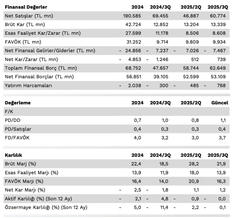 - "Şirketin brüt kar marjı önceki senenin üçüncü çeyreğine göre 3,3 puan artışla %21,8’e yükselirken FAVÖK marjı 2,4 puan artışla %16,4’e çıktı. Bununla beraber Enerjisa'nın son 3 yıllık FD/FAVÖK çarpanı olan 4,87x göre %25 iskonto barındırırken son 1 yıllık FD/FAVÖK çarpanı olan 4,76x göre %23 iskonto bulunduruyor. Şirket, yatırımların bir kısmını geçici olarak ertelenmesi ile azalmasını beklediği faiz giderleri sayesinde 2025'te baz alınan net kâr tahminleri yılın ilk 9 ayında 5,7 milyar TL’ye ulaşmasıyla beraber 5–6 milyar TL’den 7,5 milyar TL’ye çıktı."
