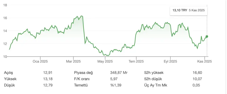 ISCTR hissesi son bir yılda %9 gerilerken, BIST-100 endeksinin %12 altında performans sergiledi. İş Bankası hisseleri, 2025 öngörülerimize göre 4,06x F/K ve 0,87x PD/DD çarpanlarından işlem görüyor."