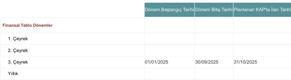 - 3. Çeyrek (Temmuz-Eylül): Kasım ayı sonuna kadar açıklanır.