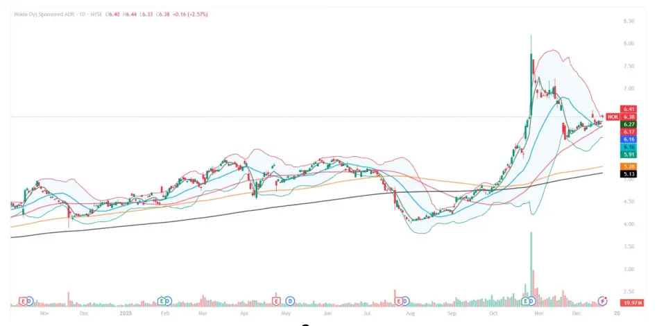 Deniz Yatırım 19 Aralık 2025 tarihinde bir rapor yayınladı. Aracı kurum yayınladığı raporunda bazı yurtdışı hisselerine yer verdi. Bu hisselerden biri de NOKIA CORPORATION (NOK) oldu. Tüketim ürünleri sektörüne ve otomobil endüstrisine ait olan şirket için hedef fiyat verildi. Güncel fiyatı 6,4$ olan hisse için 7$'lık hedef fiyat verildi.