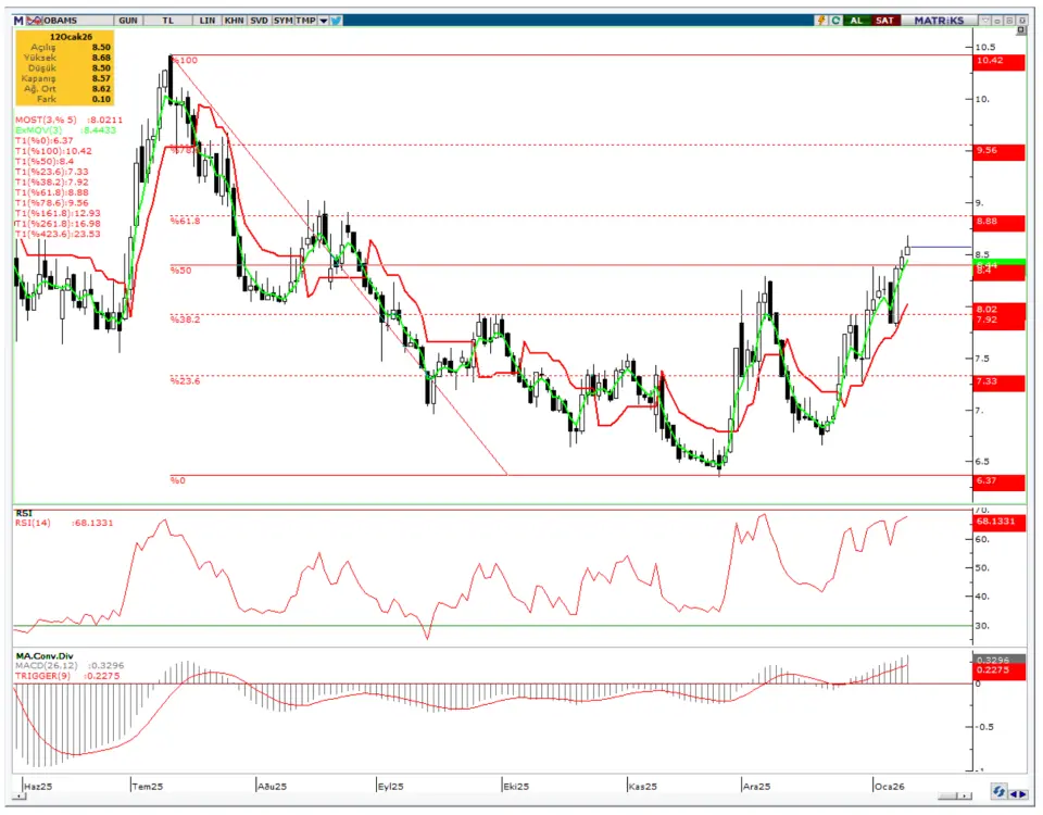 nedeniyle OBAMS hissesinde 8,65TL ve daha sonra 8,75TL seviyelerine doğru yükseliş kaydedilebilir.