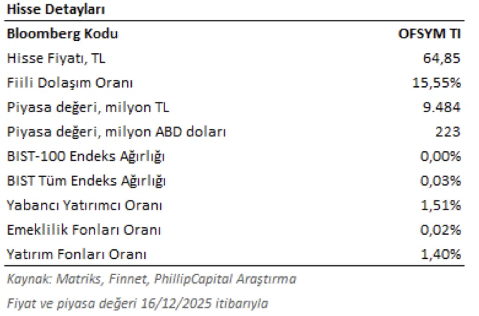 "PhillipCapital Araştırma Birimi olarak, Ofis Yem Gıda Sanayi Ticaret A.Ş. (OFSYM) ile şirketin 2025 yılı 3. çeyrek finansal sonuçları, ilgili dönemde sektörü etkileyen faktörler ve şirketin büyüme hedefleri üzerine bir toplantı gerçekleştirdik. Öne çıkan başlıklar ve notlarımız aşağıdadır:
