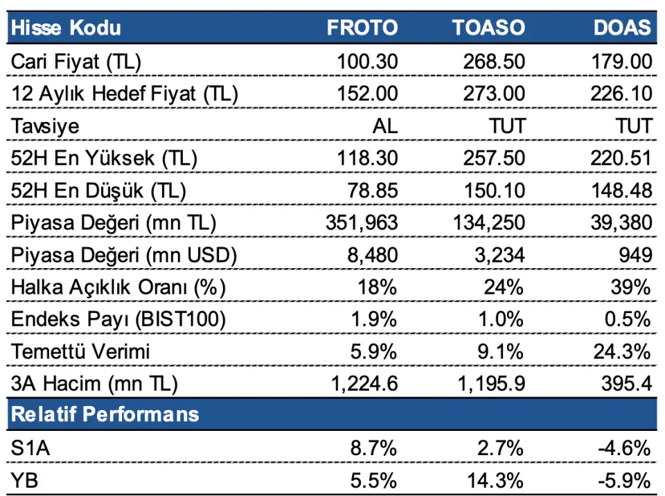 - "Şirket bazında değerlendirdiğimizde; Tofaş tarafında Eylül ayında yıllık bazda satış hacminde kaydedilen artışa rağmen, Ocak-Eylül 2025 döneminde zayıf seyreden satış performansı ve pazarpayındaki gerileme nedeniyle, şirketin sektör ortalamasının altında kalmaya devam ettiği görülüyor."