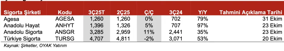Oyak Yatırım tarafından banka ve sigorta hisseleri için 2025 yılı 3. çeyrek kar tahminleri duyuruldu. Aracı kurumun finansal sektör raporundaki detaylar dikkat çekti.