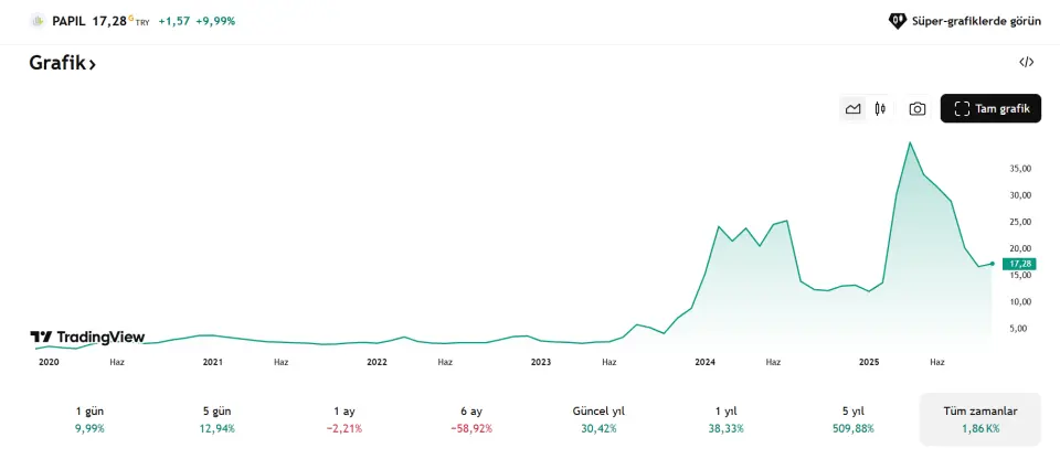 Son işlem gününde ise beklenmedik bir hareket geldi. Papillon Savunma tavan yaparak %10 civarında yükseldi ve 17,28 TL’ye kadar çıktı. Bu hareket, “acaba yeniden mi başlıyor?” sorusunu akıllara getirdi.