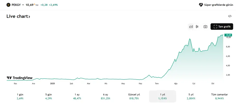 Peker GYO (PEKGY), bu yılın en çok kaybettiren şirketi oldu desek yanlış olmaz. Hissenin performansı öyle kötü gitti ki, yatırımcıların alım gücü neredeyse eridi diyebiliriz. Son 1 seneye bakıldığında %85 civarında kayıp var. Bu sert düşüş, Peker GYO’yu resmen yatırımcıların canını en çok sıkan hisselerden biri yaptı.