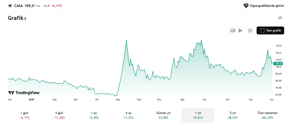 Bugünkü işlem gününde hisse yaklaşık %6 oranında düşüşle açılıyor ve fiyat taban seviyesine gerileyerek 105 TL bandına kadar düşüyor. Bu hareket, kısa vadeli görünümde dikkatin yeniden Casa Emtia Petrol üzerinde yoğunlaşmasına neden oluyor ve hissede volatil fiyatlamanın sürdüğünü gösteriyor.
