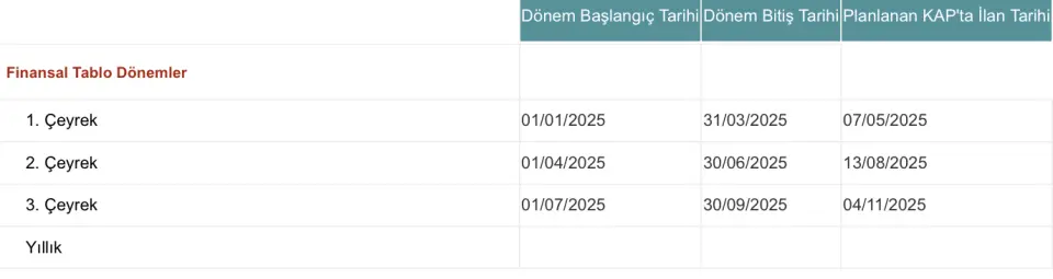 Holding resmi KAP açıklamasında "Şirketimizin 30 Eylül 2025 tarihinde sona eren ara dönemine ilişkin bağımsız denetimden geçmemiş finansal raporlarının 4 Kasım 2025 tarihinde seans sonrası Kamuyu Aydınlatma Platformu'nda ilan edilmesi planlanmaktadır." ifadesine yer verdi.