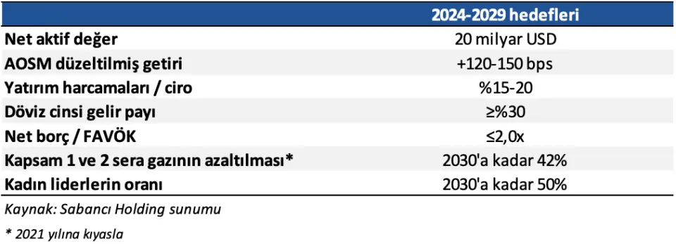 Holding’in, 2024-2029 hedeflerinde herhangi bir değişiklik bulunmuyor. Söz konusu hedefleri, aşağıda yer alan tabloda görebilirsiniz.
