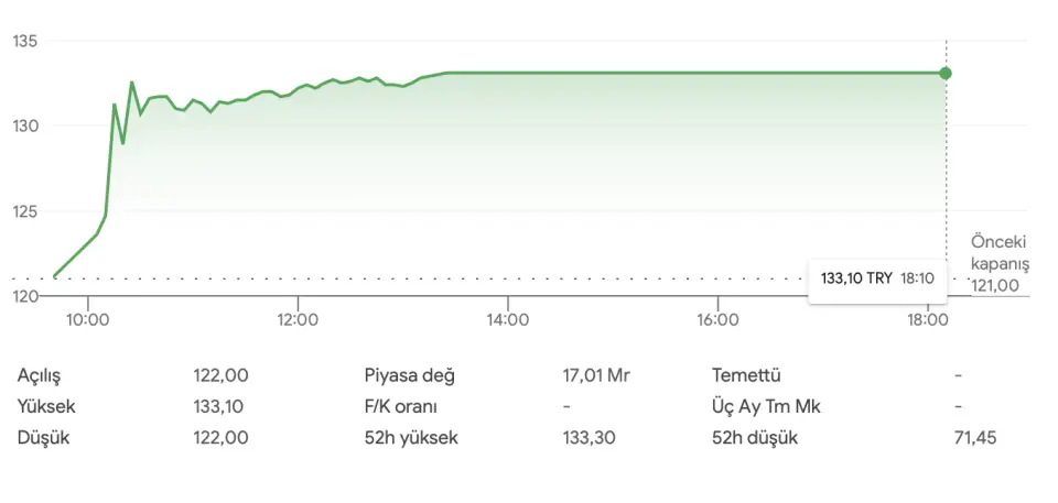 CRFSA hissesi 12 Aralık 2025'e 123,60 TL'den başlangıç yaptı. Hisse saat 10.25 itibariyle 132,60 TL bandına yükseldi. CRFSA saat 13.25'te ise 133,10 TL'yi gördü ve TAVAN oldu. Geçen sene 16 Aralık'ta 111,50 TL olan hisse, son 1 senede %19,37 değerlenmiş oldu. Yılbaşından bu yana ise %27,25 değer kazanan CRFSA, son 6 ayda ise %75,25 değerlendi. Son 1 aylık grafikler incelendiğinde ise yatırımcısına %10,9 kazandırdığı görülen hisse, son 5 günde de %17,89 değerlenmiş oldu.Borsa İstanbul'daki son seansı 133,10 TL'den kapatan hissenin, 15 Aralık 2025 tarihindeki işlem gününe nasıl başlayacağı ve gün içindeki performansı merakla bekleniyor.