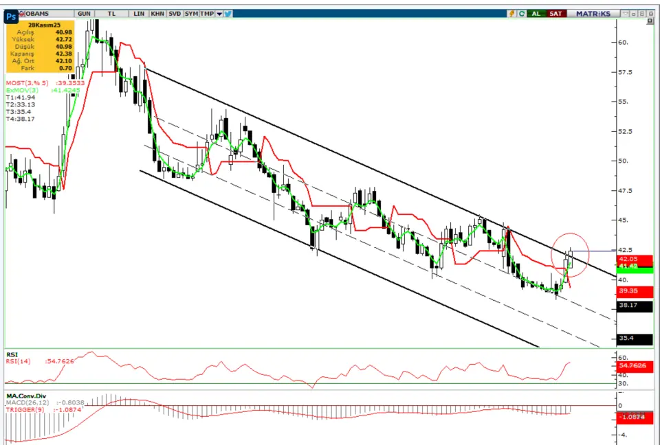 nedeniyle OBAMS hissesi 42,84TL ve daha sonra 43,36TL seviyelerine doğru yükseliş kaydedebilir.