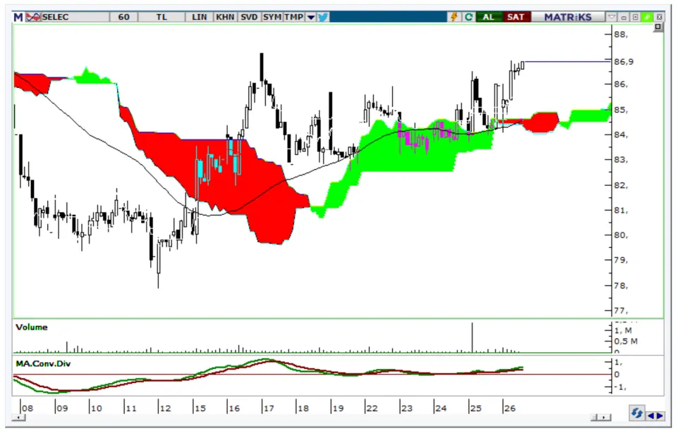 nedeniyle SELEC hissesinde 87,75TL ve daha sonra 88,6TL seviyelerine doğru yükseliş kaydedilebilir.