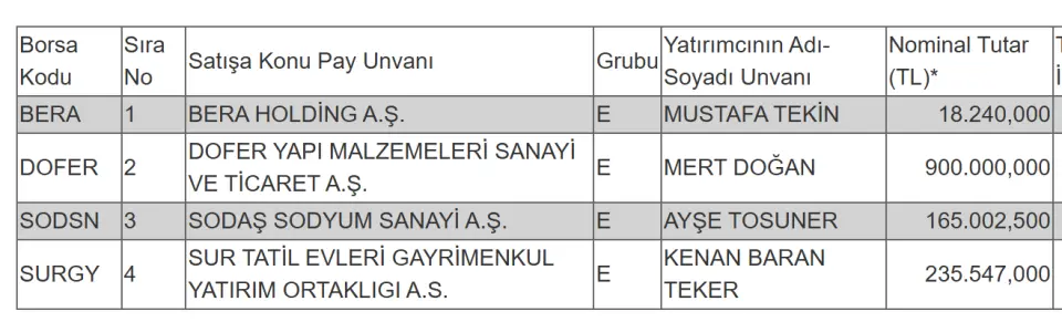 Bu işleme konu olan bir şirket oldu. Bu şirket, DOFER YAPI MALZEMELERİ SANAYİ VE TİCARET A.Ş. olurken, çeşitli yatırımcılar E tipi işlem görmeyen paylarının bir miktarını borsada işlem gören tipe dönüştürmek için başvuru yaptı.