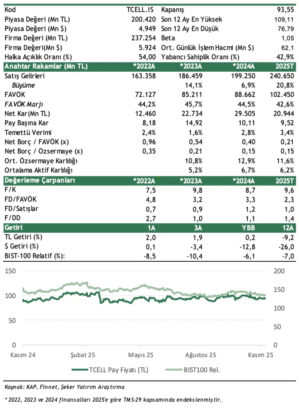 Şeker Yatırım TCELL Hedef Fiyat