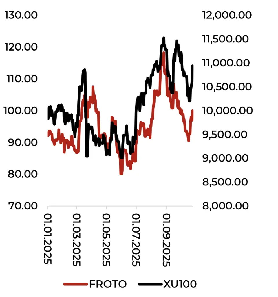 - "2025 yılı 3.çeyrekte FROTO, 189.58mlr TL hasılat, 11,73 mlr TL FAVÖK, 8,4mlr TL net kar ile öngörümüzün hafif üzerinde sonuçlar duyurduğunu görmekteyiz. Satışlar 3. çeyrekte çeyreksel olarak baktığımızda %0.4 artışla yatay seyrini koruduğunu görmekteyiz. İhracat tarafında %0.1 ile yatay görünüm izlerken iç tarafta ise zorlu koşulların getirmiş olduğu rekabetten kaynaklı yürütülen agresif satış politikasının etkisiyle %1.1 daralma gösterdiğini görmekteyiz."