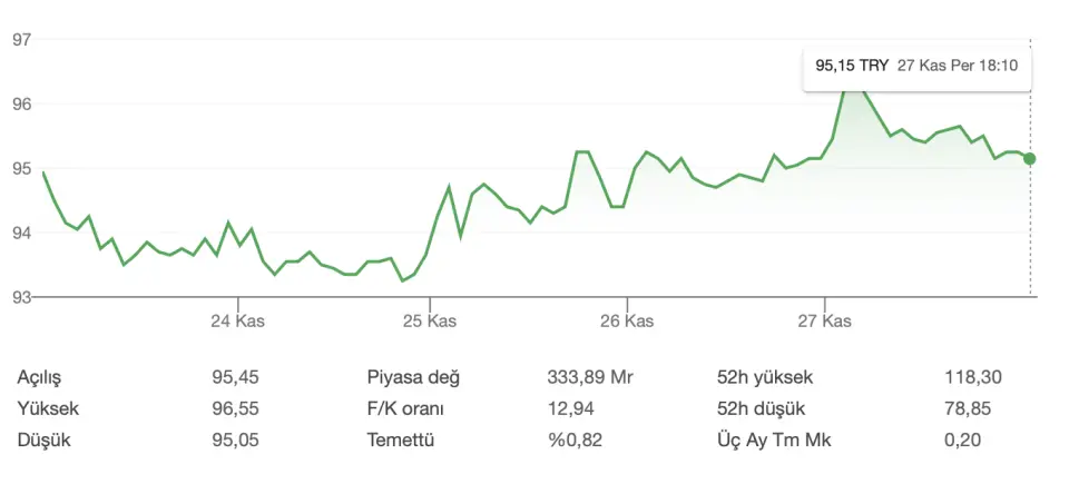 - "Kısa vadeli resimde meydana gelen sıkışma formunu yukarı yönde kırma ihtimalini yüksek gördüğümüz hisseyi 95,00 TL stop olmak üzere ALIM yönünde izlemeyi tavsiye ediyoruz. Yukarı yöndeki eğilimin özellikle 96,00 TL üzerindeki kalıcı fiyatlamalarda ivme kazanacağı öngörülebilir."