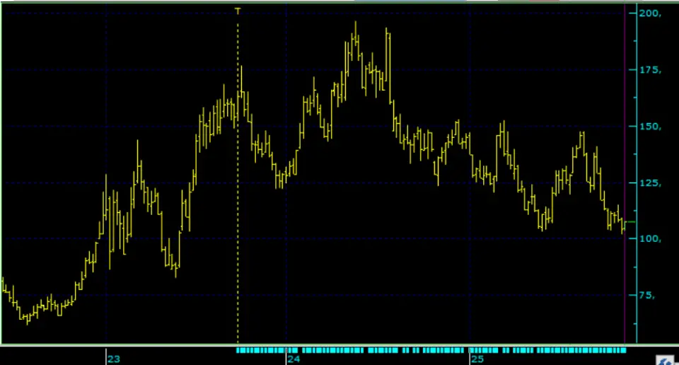 ARCLK haftalık olarak baktığımızda geçen yılın Mayıs ayından beri düşüş trendinde. O dönem 196 TL zirve fiyattan düşüş trendine giren hisse bu günlerde 100 TL psikolojik destek fiyata kadar çekilmiş durumda. Borsanın ve Türkiye' nin n büyük şirketlerinden olan ARCLK in bu kadar uzun dönem düşen trendde olması yatırımcısına büyük kayıp yaşatıyor. Şirker borsada BIST100 endeksine dahil olan şirketler arasında.