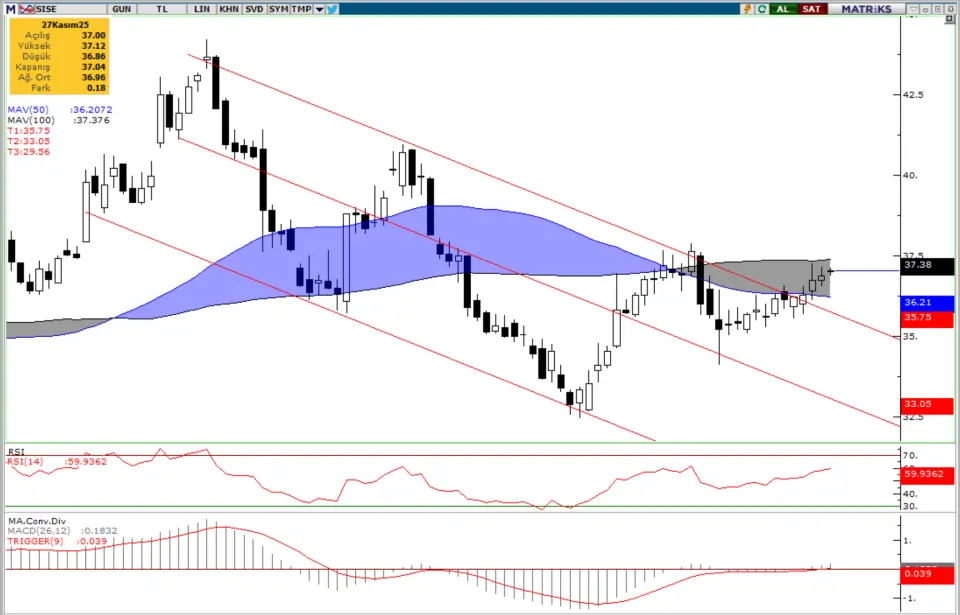 nedeniyle SISE hissesinde 37,40TL ve ardından 37,84TL seviyelerine doğru yükseliş beklenebilir.