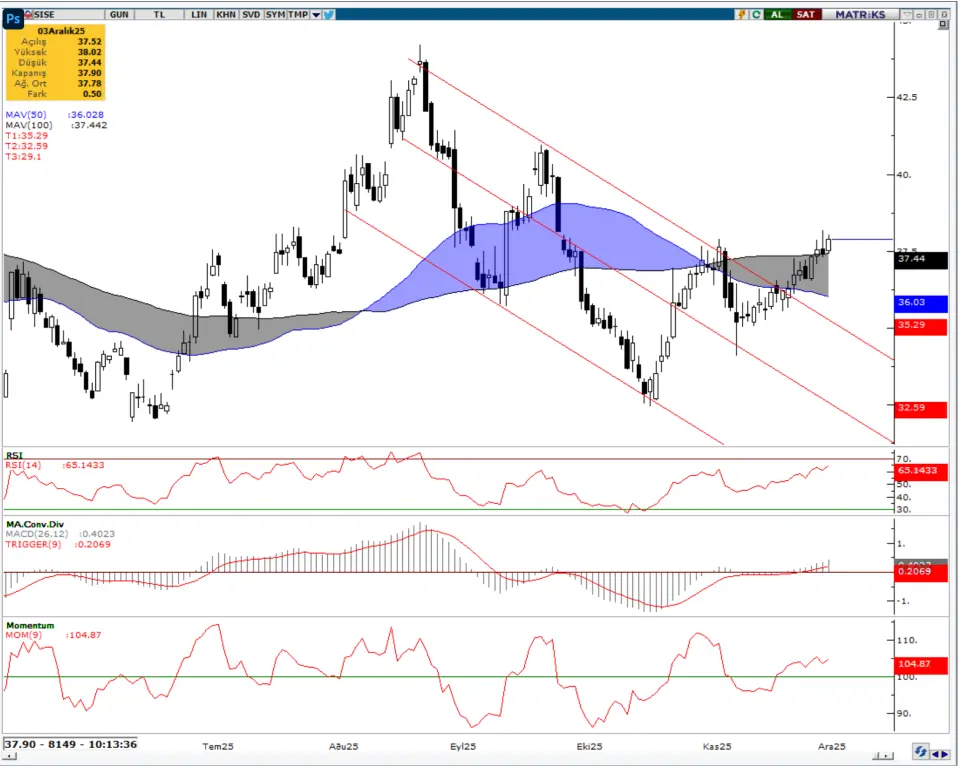 nedeniyle SISE hissesinde 38,30TL ve ardından 38,80TL seviyelerine doğru yükseliş beklenebilir.