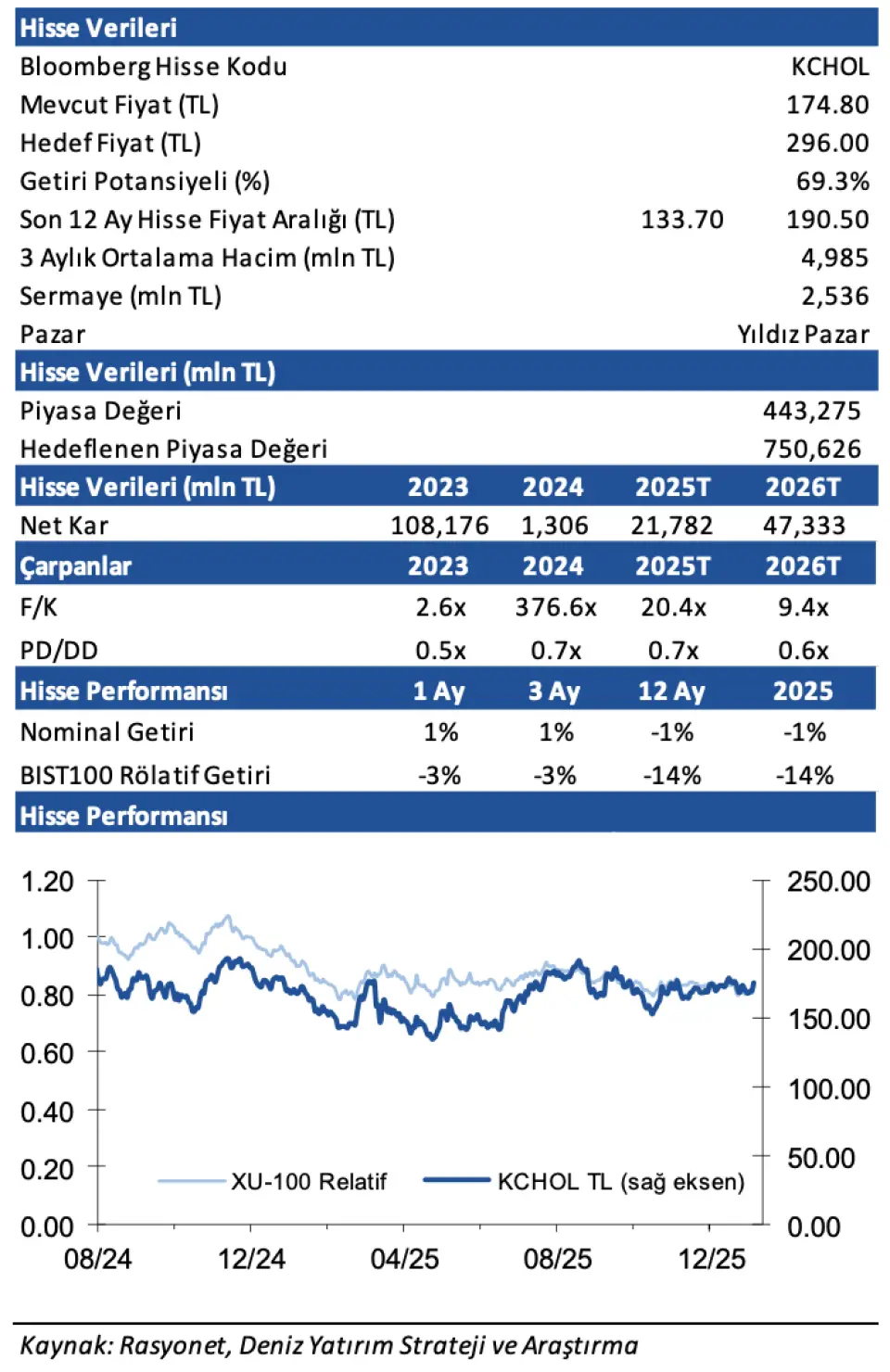 Borsa aracı kurumu Deniz Yatırım, model portföyünde yer alan Koç Holding (KCHOL) hissesi için 12 aylık hedef fiyat ve hisse tavsiyesi ile birlikte getiri potansiyelini de açıkladı.