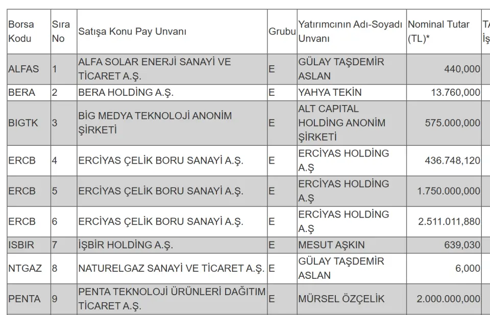 Bu işleme konu olan bir şirket oldu. Bu şirket, PENTA TEKNOLOJİ ÜRÜNLERİ DAĞITIM TİCARET A.Ş. olurken, çeşitli yatırımcılar E tipi işlem görmeyen paylarının bir miktarını borsada işlem gören tipe dönüştürmek için başvuru yaptı.