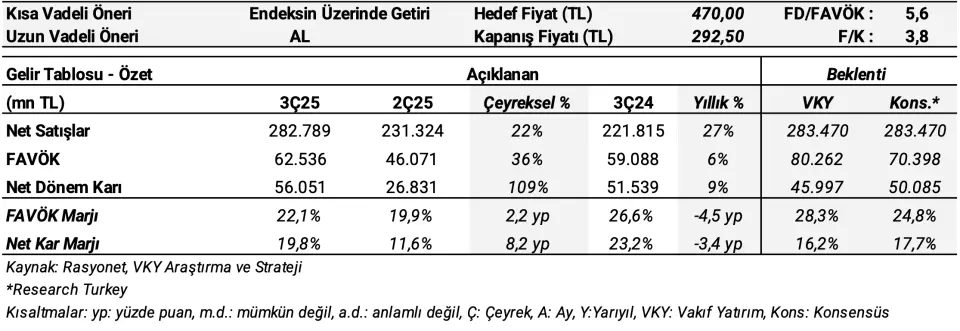 Türk Hava Yolları'nın (THY) 2025 yılının 3. çeyreği için duyurduğu finansal verileri analiz edildi. Aracı kurum, THYAO hissesinin 470 TL'ye yükseleceğini aktardı. Hisse içi uzun vadeli AL tavsiyesi verildi.