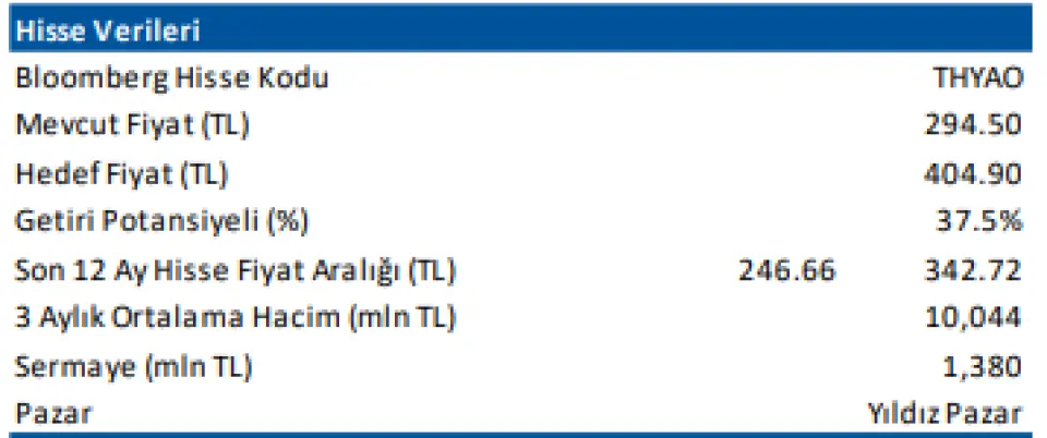 Deniz Yatırım THYAO hissesine 404,90 TL hedef fiyat verdi. Kurum hissede %37,5 prim bekliyor.