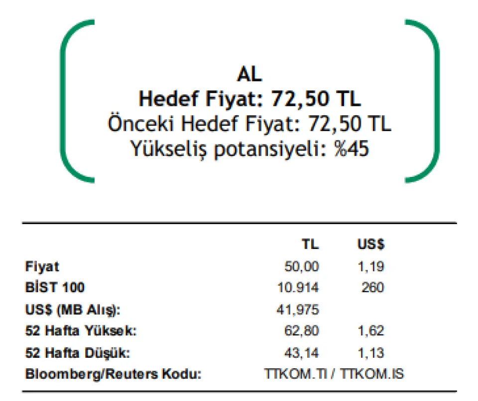 TTKOM Bilançosu Sonrası 'AL' Tavsiyesi Korundu: Hedef Fiyat Kaç TL?