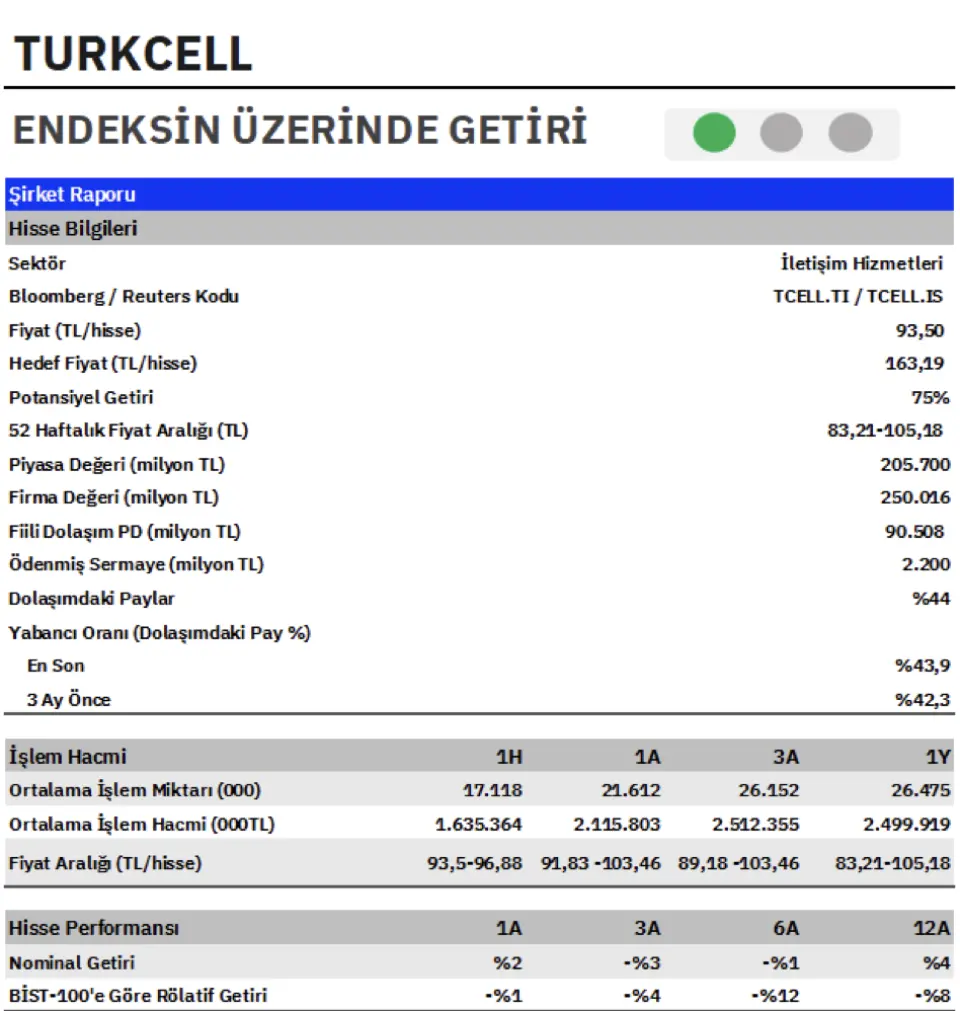 - "Turkcell ve Türk Telekom, artan enflasyon ve sektörde fiyat yansımalarının gecikmeli etkisi nedeniyle Ara21–Ara23 döneminde BIST100 endeksine kıyasla sırasıyla %20 ve %29 oranında zayıf performans sergilemiştir. 2024 yılında telekom hisseleri anlamlı bir yeniden değerleme sürecine girmiş; yılı Turkcell (%30) ve Türk Telekom (%36) olmak üzere BIST100’e göre güçlü bir relatif performansla tamamlamıştır. 2025YBB itibarıyla performanslar ayrışmış; Türk Telekom endeksi %13 geride bırakırken, Turkcell %7 gerisinde kalmıştır. Bu ayrışma, ağırlıklı olarak Türk Telekom’un 3Ç’deki olağanüstü güçlü net abone kazanımı ve buna bağlı ivmelenen kârlılığın, benzerlerine kıyasla daha yüksek FAVÖK büyüme potansiyeli sunmasından kaynaklanmaktadır. Bize göre; mevcut telekom değerlemeleri, sektörün enflasyonist dönem sonrası reel büyümesini ve nakit üretimini yeniden tesis etme kapasitesini yeterince yansıtmamakta olup, operasyonel momentumun normalleşmesiyle kademeli bir yeniden değerleme potansiyeli barındırmaktadır."