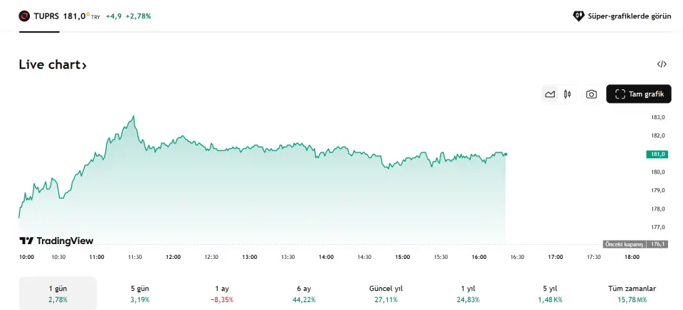 Tüpraş güne yükselişle devam ediyor! Hedefi neresi olacak?