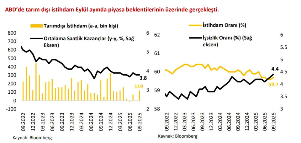 • ABD Merkez Bankası (Fed), son toplantı tutanaklarını yayımladı. Tutanaklarda, para politikasının ne ölçüde kısıtlayıcı olduğuna ilişkin farklı görüşlerin bulunduğu aktarıldı. Bazı yetkililer Ekim ayındaki indirime rağmen politikanın hâlen kısıtlayıcı olduğunu düşünürken, diğerleri ekonomik faaliyetin dayanıklılığı ve gevşeyen finansal koşullar nedeniyle politikanın artık belirgin biçimde kısıtlayıcı olmadığı görüşünü dile getirdi. Tutanaklar ayrıca, bazı üyelerin Aralık ayında ek indirimden yana, diğerlerinin ise faizin sabit tutulmasından yana olduğunu gösterdi. • ABD, hükümet kapanması sırasında ülkedeki 40 büyük havalimanında uygulanan ticari uçuş kısıtlamalarını sona erdireceğini açıkladı. • Tarım dışı istihdam Ekim ayında ayında 53 bin kişi beklentilerin üzerinde 119 bin kişi artış gösterdi. • İşsizlik oranı Ekim ayında beklentilerin 0.1 puan üzerinde %4.3 seviyesinde gerçekleşti. • ABD Başkanı Donald Trump, Suudi Arabistan’ı “NATO Üyesi Olmayan Önemli Müttefik” olarak tanıdıklarını ve iki ülke arasında stratejik bir savunma anlaşması imzaladıklarını açıkladı. • Trump, Brezilya’dan ithal edilen bazı tarım ürünlerini ek tarife kapsamı dışında bırakmak amacıyla kararname imzaladı. Kararnamede, söz konusu düzenlemenin 13 Kasım itibarıyla gümrükten çekilen veya depodan çıkarılan mallar için geçerli olacağı, gerekli görülmesi hâlinde tahsil edilen vergilerin iade edileceği belirtildi. • ABD, Rusya-Ukrayna savaşının sona erdirilmesine yönelik olarak İsviçre’nin Cenevre kentinde yapılan barış planı görüşmelerinin ardından, tarafların “güncellenmiş ve revize edilmiş bir barış çerçevesi taslağı” hazırladığını duyurdu.
