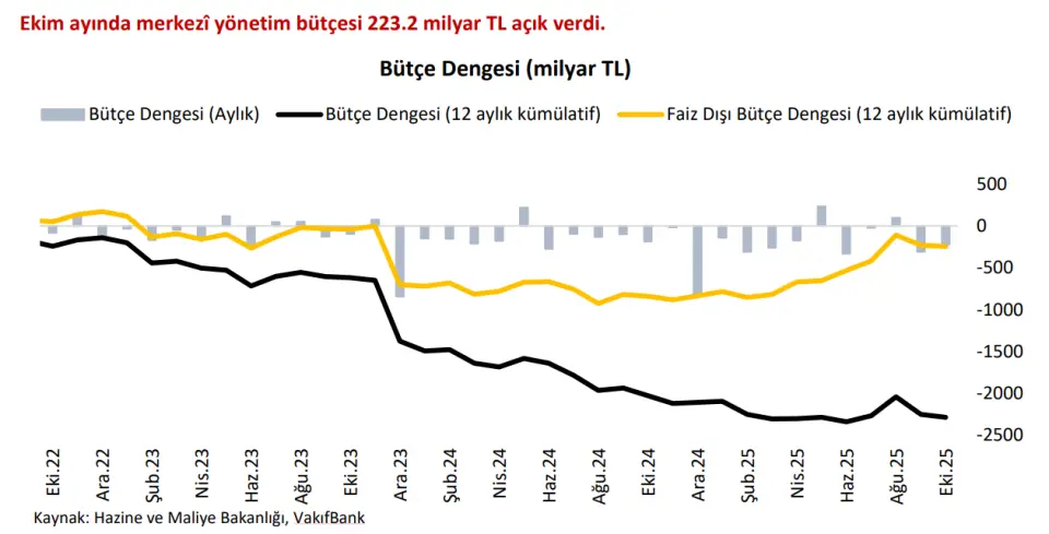 • Merkezi yönetim bütçe dengesi, 2025 yılının Ekim ayında yıllık bazda %19.8 artışla 223.2 milyar TL açık verdi. Faiz dışı denge ise, Ekim ayında 65.8 milyar TL açık verdi. • Konut fiyat endeksi Ekim ayında bir önceki aya göre %1.62, bir önceki yılın aynı ayına göre nominal olarak %31.60 artarken; reel olarak ise %1 azalarak 198.82 seviyesinde gerçekleşti. • Tüketici güven endeksi, Ekim ayında 83.6 iken Kasım ayında %1.6 oranında artarak 85.0 oldu. • Merkezi yönetim borç stoku, Ekim ayında 13.172 milyar TL olarak gerçekleşti. Borç stokunun 6.162,6 milyar TL’lik bölümü Türk Lirası cinsi, 7.008,9 milyar TL’lik bölümü ise döviz cinsi borçlardan oluştu. • Uluslararası Para Fonu (IMF), Türkiye ekonomisinin kısa vadede güçlü büyümesini sürdürmesinin ve enflasyonun kademeli olarak gerilemesinin beklendiğini bildirdi. IMF, Türkiye ekonomisinin 2025’te %3.5, 2026’da ise %3.7 büyüyeceğini öngördü. Açıklamada, 2025 yıl sonu enflasyon tahmininin %33 olduğu belirtilirken; ileriye dönük olarak, ılımlı ücret artışı ve enflasyondaki gerilemeyle birlikte azalan ataletin, enflasyonda kademeli bir düşüşü desteklemesi beklenildiği aktarıldı.
