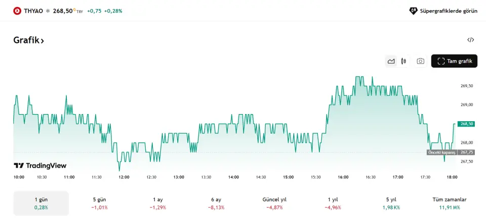 Son 1 yıllık performans incelendiğinde hissede yaklaşık %6’lık bir değer kaybı öne çıkıyor. Alternatif yatırım araçlarının yüksek getiri sunduğu mevcut ekonomik ortamda bu tablo, THY yatırımcılarını tatmin etmekten uzak kalıyor.