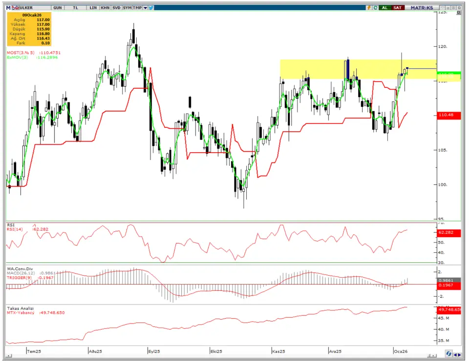 nedeniyle ULKER hissesinde 118,00TL ve daha sonra 120,00TL seviyelerine doğru yükseliş kaydedilebilir.