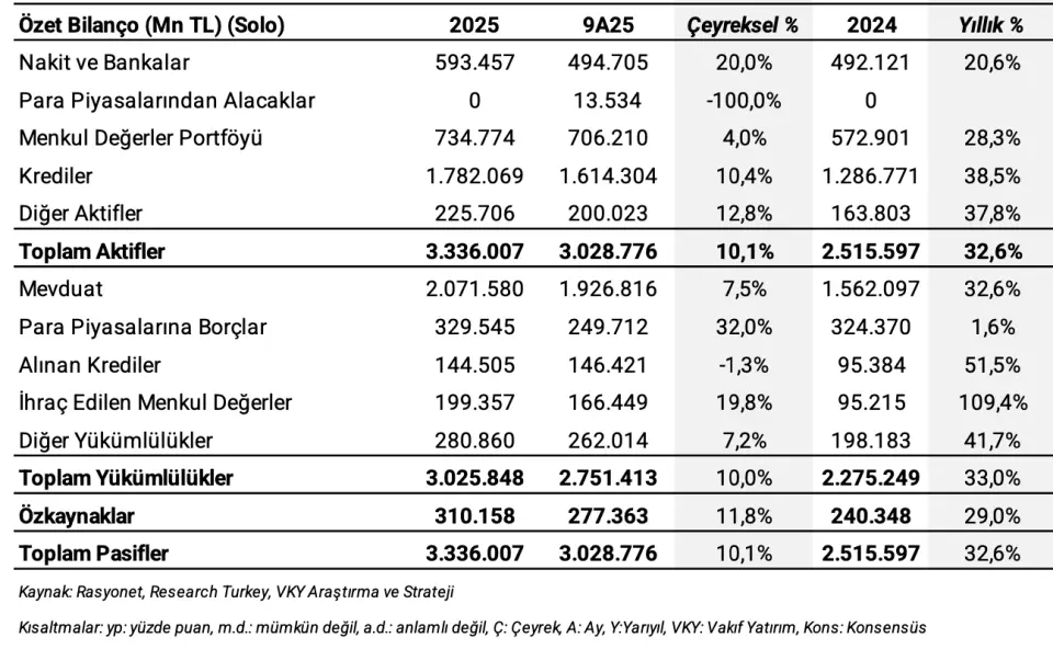 | Kalem | 4Ç25 | 3Ç25 | Çeyreksel % | 4Ç24 | Yıllık % | VKY Beklenti (4Ç25) | Konsensüs (4Ç25) |
